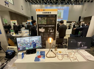 「NFB」の展示は来場者の関心を引き、多くの人たちがブースへお越しになった。複合Rの入った複雑な三次元曲げにて、意匠性を高めるニーズも多く聞かれた。