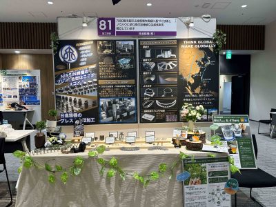2024年10月10日~11日に羽田イノベーションシティで開催された「第14回おおた研究・開発フェア」の加工技術ブースに出展した。2日間での来場者数は1,475名。 当社の強みである「深絞り」技術を活かしたプレス製品をはじめ、環境に配慮した生分解性プラスチックの最新製品「Bio7」「4Tiers」を中心に展示。さらに、自社開発のCNCフリーフォームパイプベンダーや高輝度の光電センサー用リフレクターも紹介した。 ブース装飾は新入社員4名が担当し、環境に優しい緑と白を基調に、カフェをイメージしたデザインで、来場者が気軽に立ち寄れる空間の演出を心掛けた。また早くからグローバル展開を行っている当社のスローガン「THINK GLOBAL MAKE GLOBALLY」を発信した。 来場者は決して多くない展示会であったが、多くの学術関係者や企業の皆様と活発な意見交換を行い、新たなつながりや技術交流の芽が生まれた。(T.T)