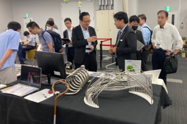 2025年7月17日に羽田イノベーションシティのPiO PARKで開催された「大きいモノ数モノ展」に出展。来場者は約550名で、当社はパイプ曲げ加工機「日進フリーフォームベンダー(NFB)」に関する展示を行った。パイプを曲げるダイスや加工中の映像、試作曲げ品を並べ、連続した複合R加工やR1000といった大径曲げを得意とする点をアピールした。